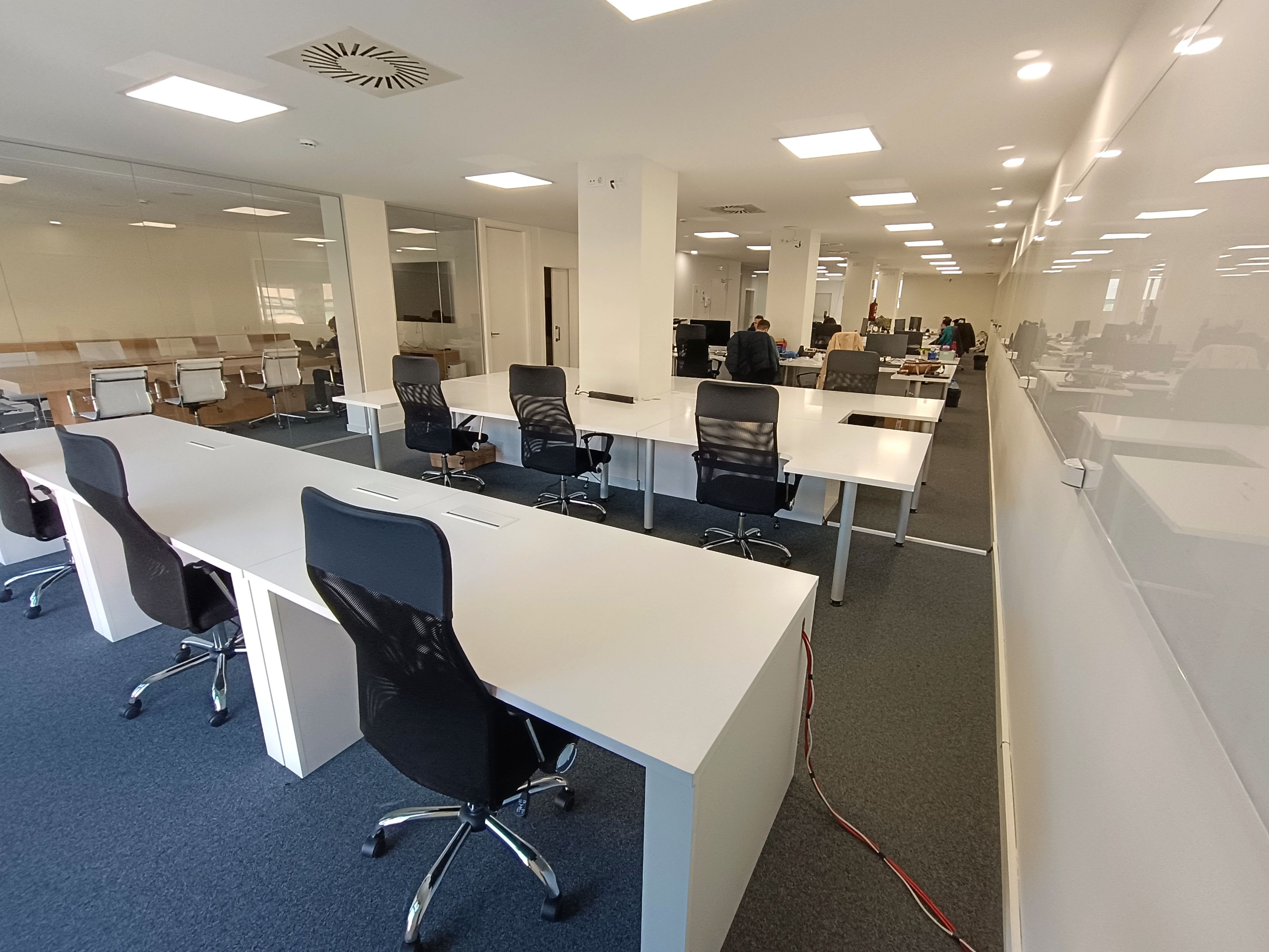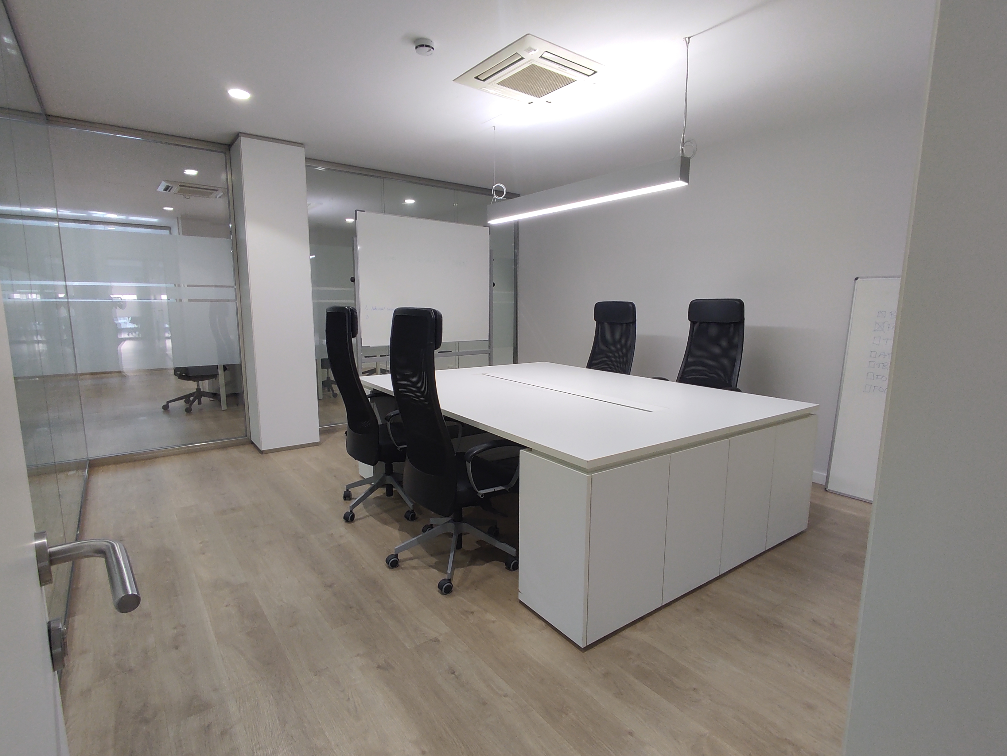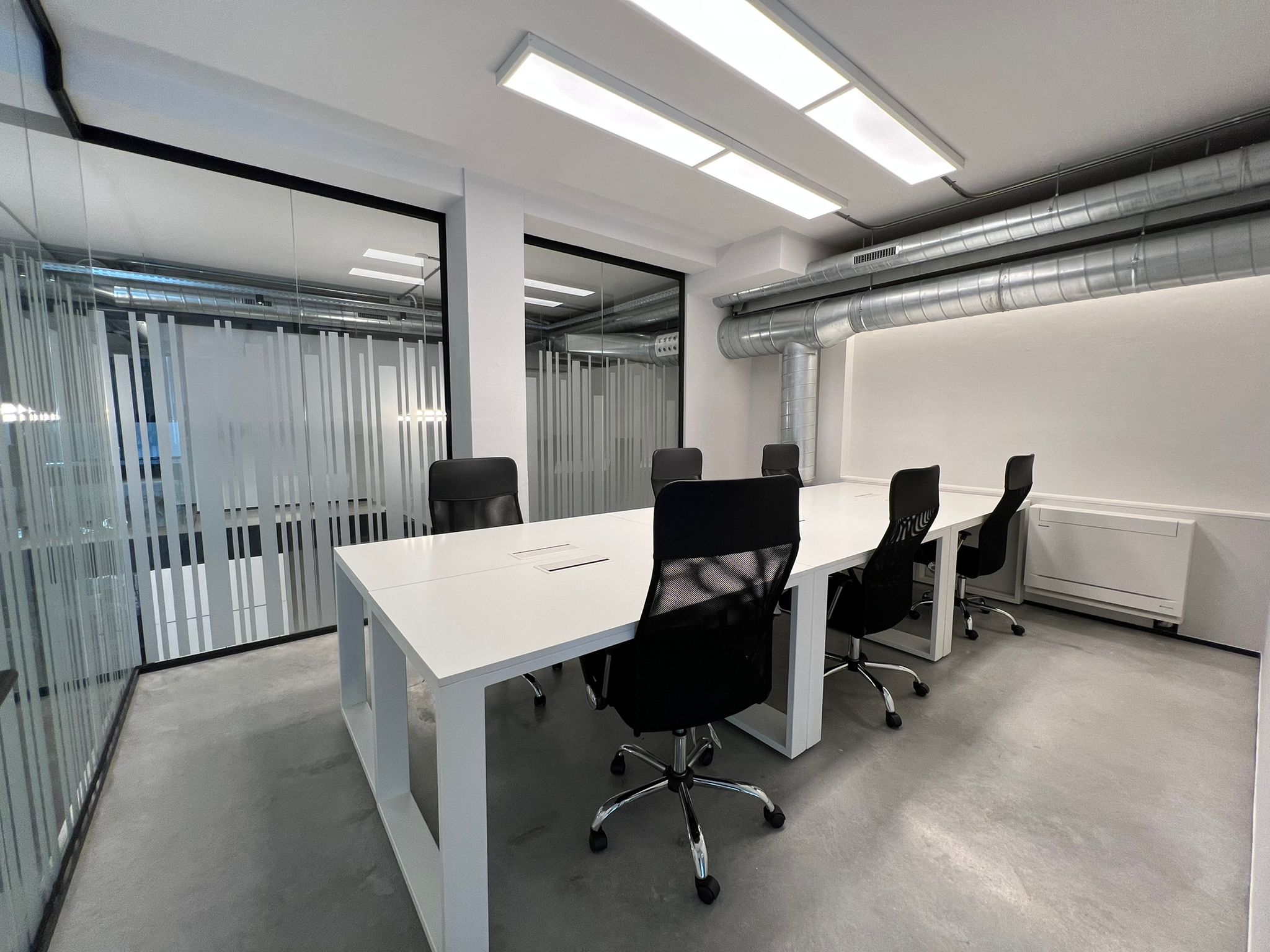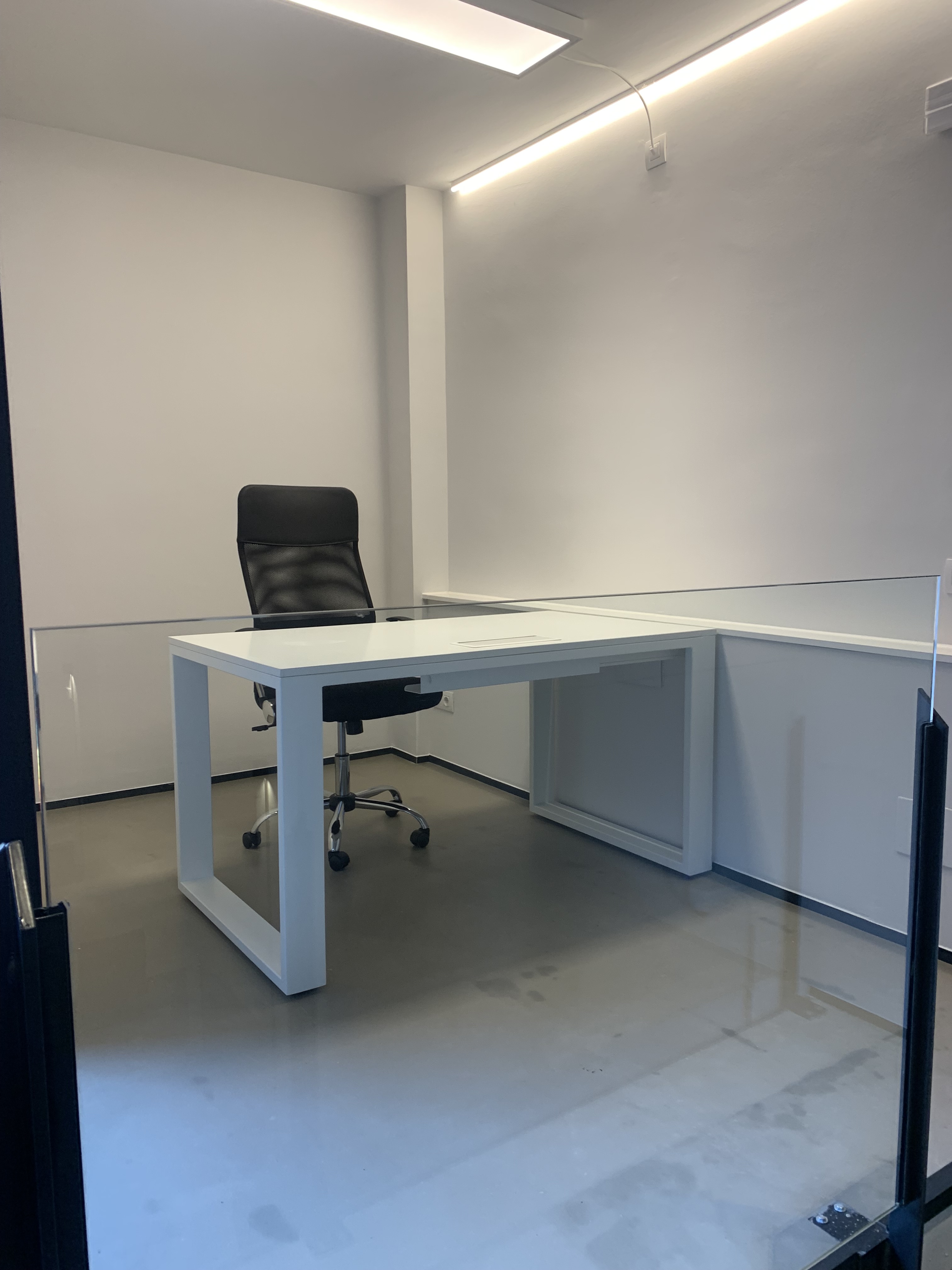 Large office space for 4 people, fully glass-enclosed and equipped with a TV. Located on the first floor of our Business Center.
