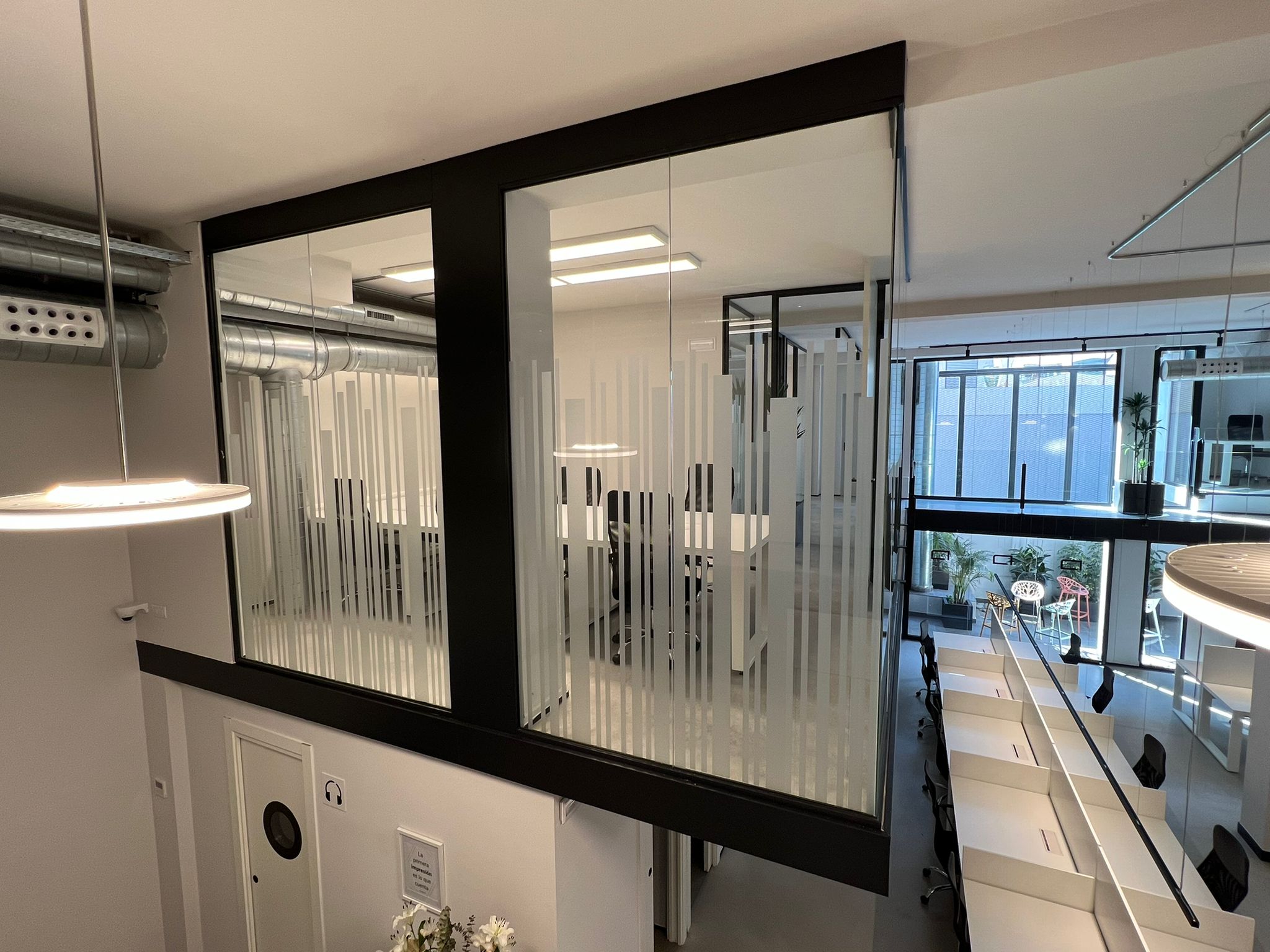 Glass-enclosed office for 6 people. An impressive space with a panoramic view of the entire center.